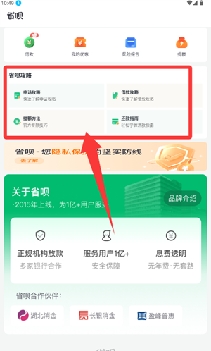 2、首页定位省呗指南板块,进入申请攻略掌握详细信息。
