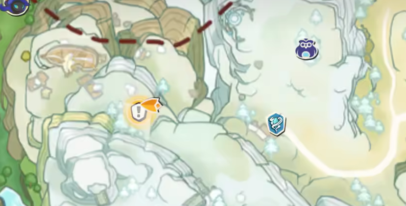 现在刷异色雪影娃娃主要是通过连补机制,触发噩梦模式之后从里面刷出异色个体。这里要注意一点,如果刷到的是污染异色,后期是没办法转换成炫彩形态的,所以纯异色价值会更高一些。开始刷之前需要先收集两个果实,第一个果实的位置比较好找,直接传送到如图示的地点就能看到。第二个果实在雪影娃娃首领的头顶区域,稍微找一下就能发现。