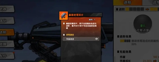 其次是武器进阶,需要消耗武器碎片,进阶可以提升武器的基础属性,碎片可通过订购和竞技商店获取。