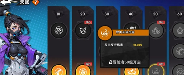 玩家可以根据所玩流派选择合适的天赋点,提升角色属性。比如武器反应是放电反应,天赋就选择放电反应伤害,如果是急冻反应,就选择急冻反应伤害,以此类推。