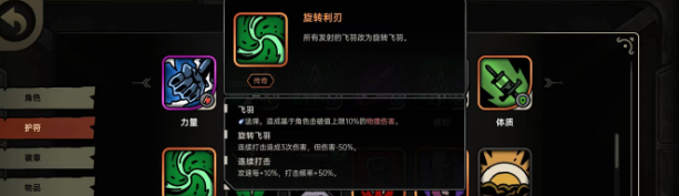 旋转利刃作为关键辅助技能,赋予所有飞羽三次连续打击能力。需注意:该效果会使单次飞羽总伤害降低50%,但换来了显著的节奏强化——每当角色攻速提升10%,每次飞羽的打击次数对应增加50%(即从3次升至4.5次,向上取整为5次),大幅提升单位时间内攻击段数与技能覆盖率,进一步放大飞羽的触发密度与综合DPS上限。