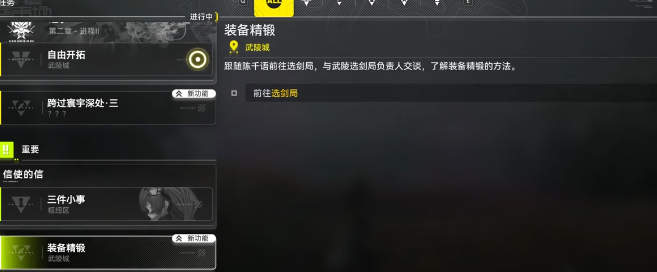 首先玩家就需要推进主线进度,在达到指定的阶段之后,就可以解锁选剑局专属任务。在接取任务之后,跟随游戏内的指引,一步一步的操作,来到指定区域去完成系统的新手教程之后,马上就可以解锁。在搭建完成之后,将进入到常态化的养成阶段,玩家就可以通过这一个产线,然后针对装备去完成反复的数值打磨。操作界面还是很有人性化的,点击一下界面的箭头就可以查看详细的规则,等到把机制摸透之后直接关闭,就可以上手操作。