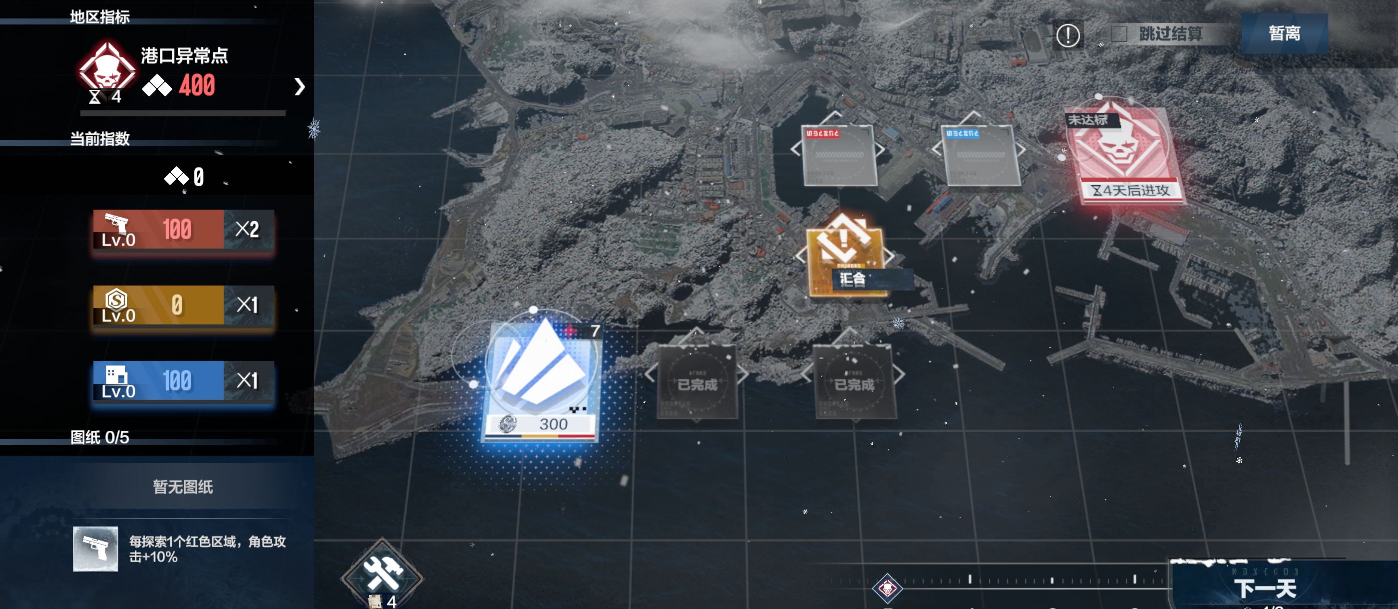 地图如图所示,其中, 侧边栏 红色的400 是要求的任务指标,当前指数0 是已经获得的指数