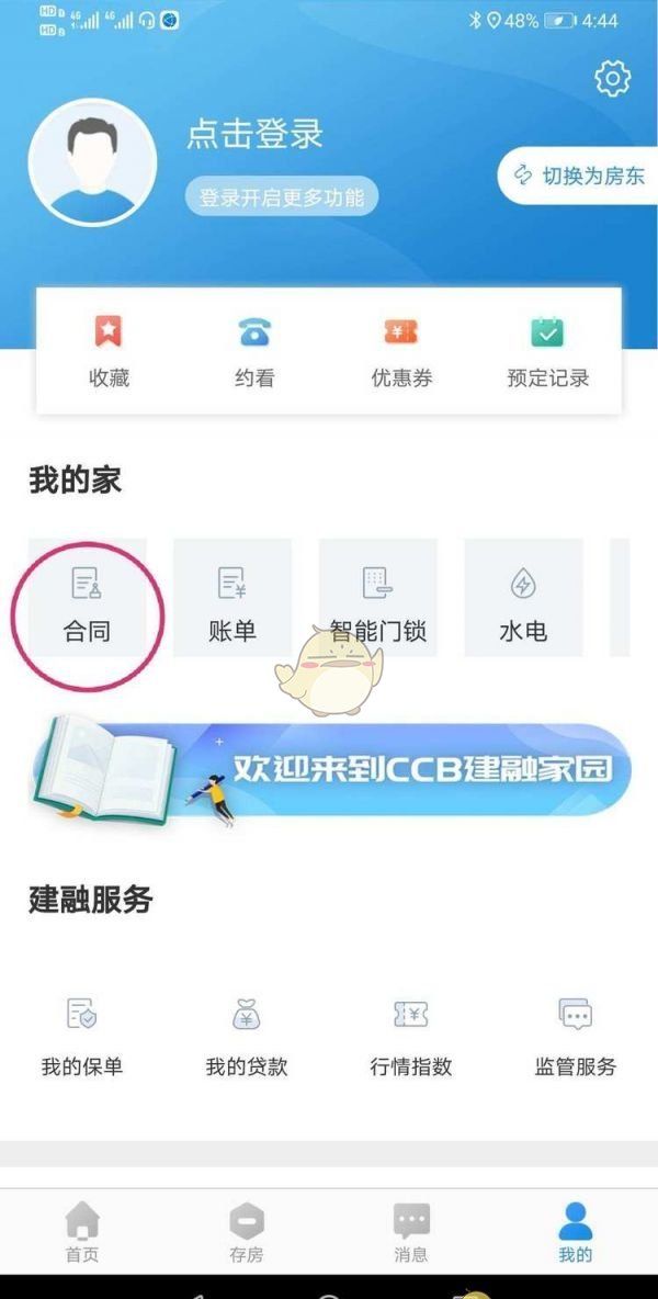 2、在租客界面(蓝色背景)查看合同的房主和地址。
