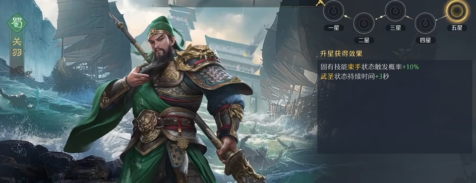 游戏当中武将进阶的这个系统大家可以简单的看成武将的红度,这里的阶级也就是红度是分成了5个时期的,其中的1、3、5个阶段当中,是大家要更加注重一些的,因为在这3次进阶当中给武将带来的提升效果比其他的两次更强,其中主要的效果一般是体现在增强技能的效果当中,不管是百分比还是技能触发的概率,以及后期能够带来的影响时间都会在这三个阶级达到提升的时候进行强化。