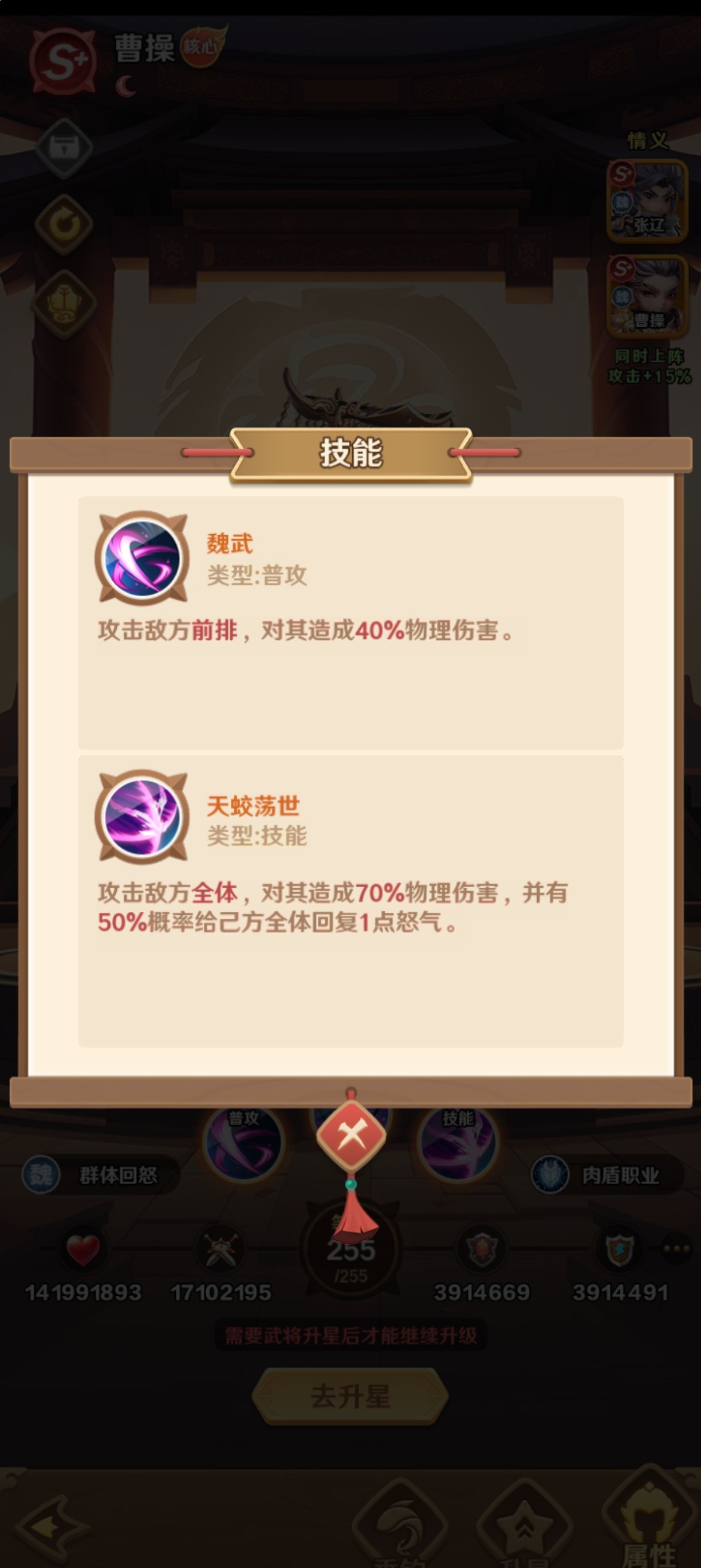 曹操在魏国阵营当中,他其实可以对敌人前排造成物理伤害。不过玩家要注意,这种物理伤害相对较为基础,但是却能够稳定的输出,而他在施展技能的时候能够给所有的敌人造成70%的物理伤害,并且还是可以具备一定的概率,能够恢复自己队伍的怒气值,其实这种怒气值能够有效的强大输出能力,还能够提高整个团队的技能,并且在循环方面的速度也会有所增强,最终能够持续性的作战。