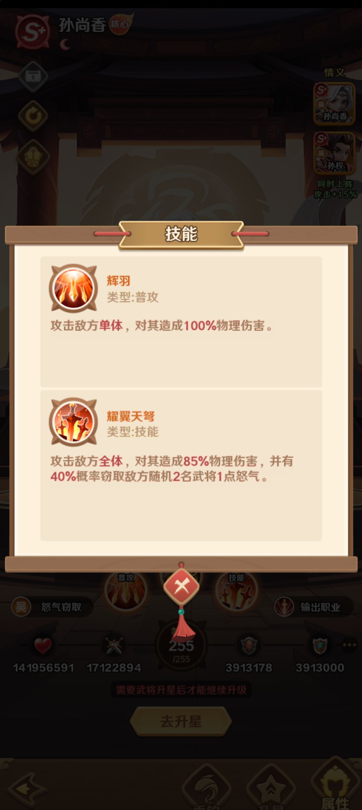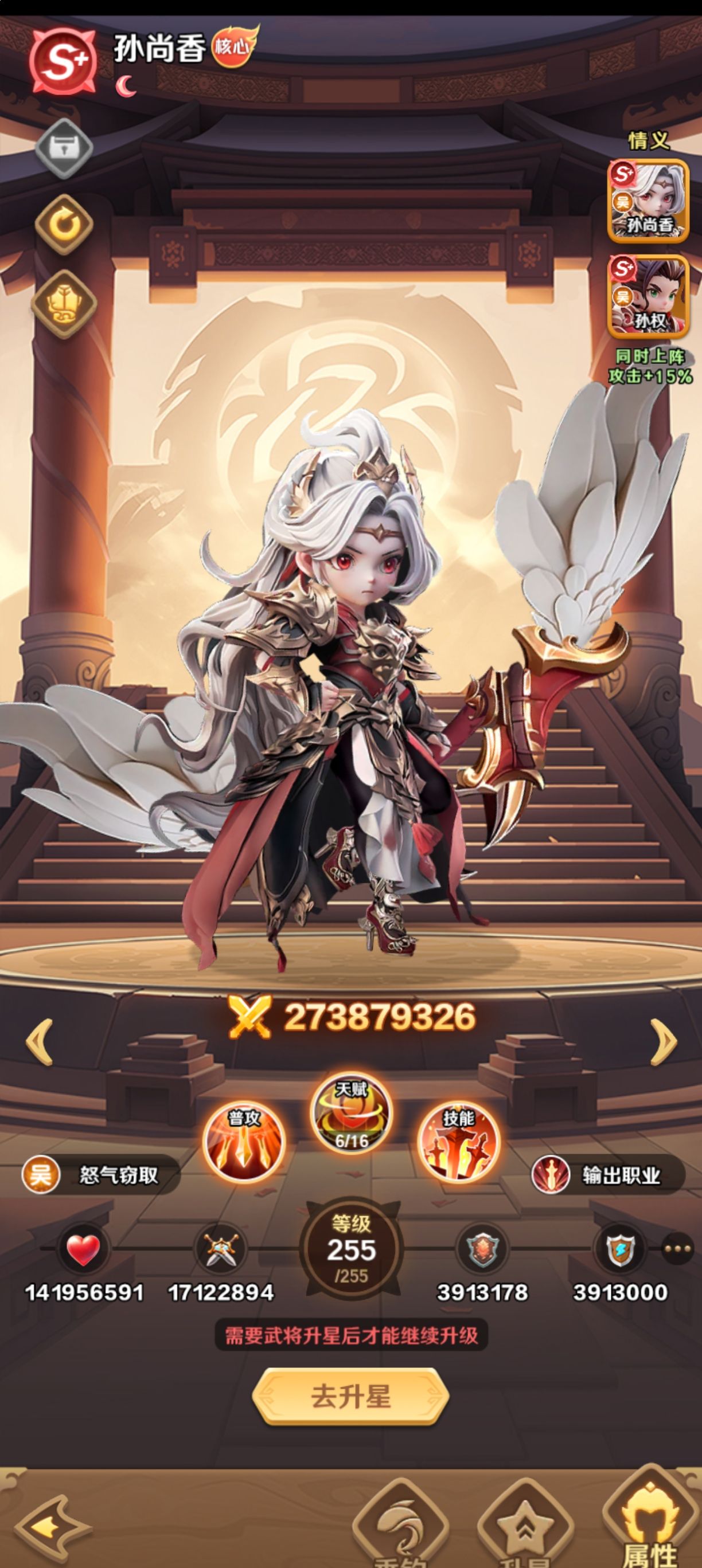 孙尚香作为吴国阵营当中的一员,在战斗的过程当中,能够对敌人单体造成100%的物理伤害,也能够实现高倍率的单体输出,比较适合高威胁的敌人,而他的技能一旦施展之后,可以对敌人全体造成85%的物理伤害。要说他在战斗的过程当中,不仅仅会让整个队伍的输出更加强烈,还能够延缓敌人的技能释放。如果正处于这样的状态,那么自己的队伍优势会更加的明显。