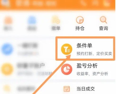 进入蜻蜓点金app,登录后在个人中心点击条件单。