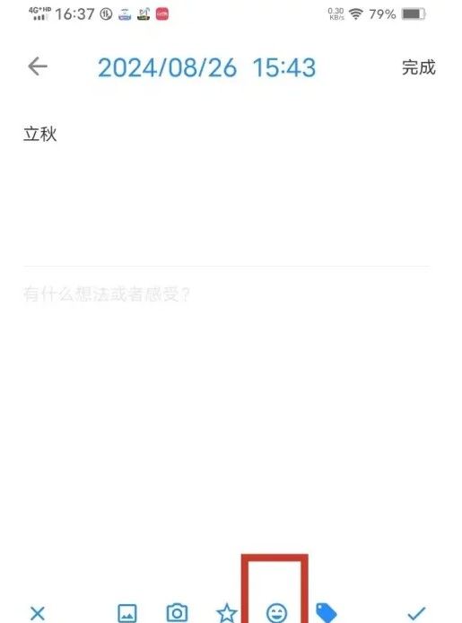 在日记详情页面,点击【心情图标】。