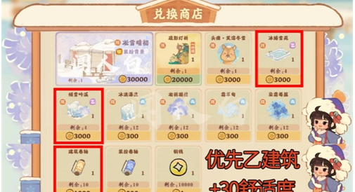 桃源深处有人家淞雪兆吉兑换商店兑换推荐,「淞雪兆吉」活动开启,商店中限量背景与外观建议0氪玩家二选一;乙、丙级建筑至少各换一个以收集图鉴,新甲级卷轴同样推荐优先兑换。头像类物品可根据喜好选择。