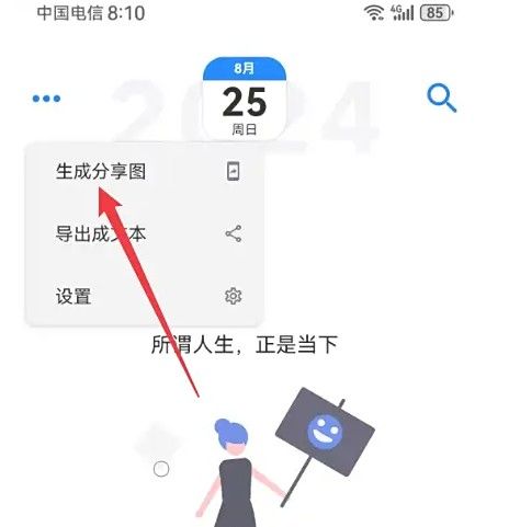极简日记app怎么分享图片,打开极简日记APP后,点击“...”图标,进入到下拉页面,勾选“生成分享图”,进入到分享页面,点击“保存图片”也可以分享给好友。
