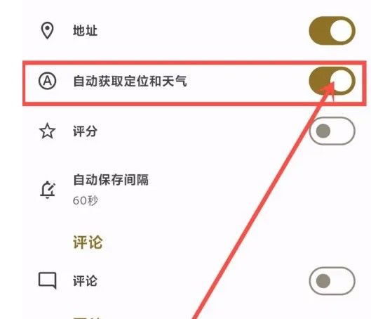 在日记设置页面,开启【自动获取定位和天气】即可。