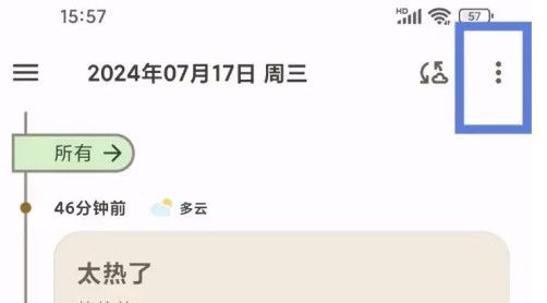 打开榴莲日记app首页,点击右上角三个点。