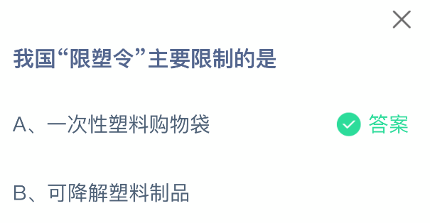 以上就是我国“限塑令”主要限制的是,支付宝蚂蚁庄园2025年12月14日答案最新,更多精彩内容,请点击关注更新!