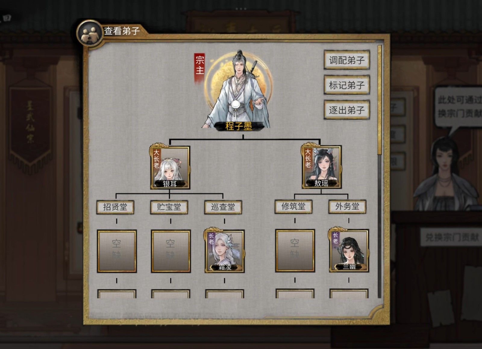 外务堂(提升名誉,高名誉能提升藏经阁秘籍品质,吸引优秀弟子)