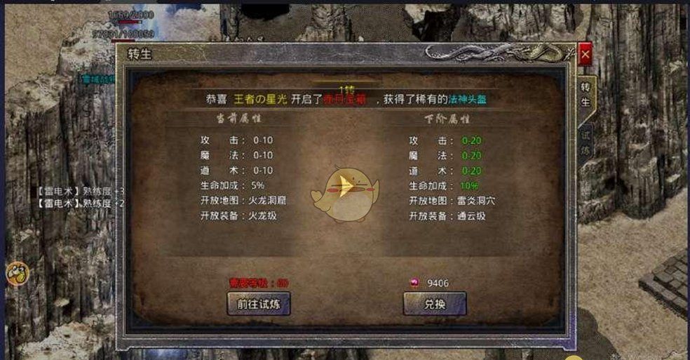 3、新区最快速的提升等级方式:进入游戏后在第一时间先购买个双倍经验卷,等快速达到28级已经可以配合系统送的时限经验勋章,10倍经验卷,快速提升自身等级,这种经验全用了的情况下一般1到1个半小时就可以达到50级然后转生了。