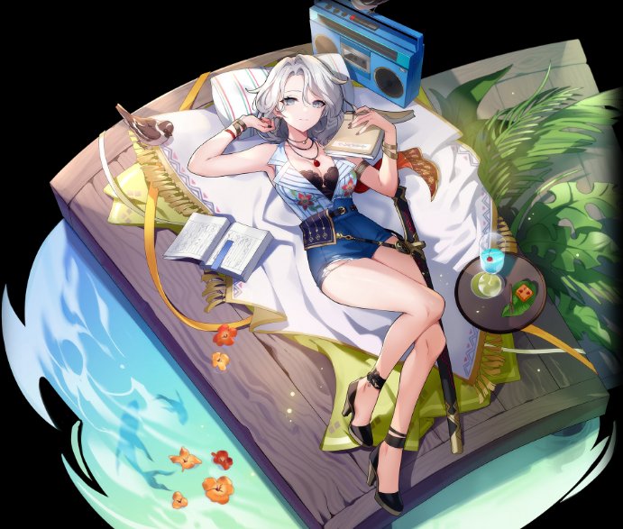 等级1:挥剑生成凝聚之气,射向攻击力最高的敌人,对目标与周遭3m的敌人造成攻击力280%的伤害,使其陷入3秒晕眩状态,并在10秒内使受击目标的体力恢复量减少60%。战斗开始时,赋予自身效果<余晖>,在有该效果的状态下使用<划破余晖>时,消耗该效果立即恢复魔力5000(等级1解锁)