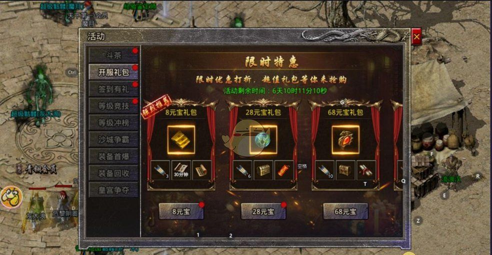 8元宝礼包获得的金币在前面用处还是很大的,强化装备基本都能增加5-6十点攻击。