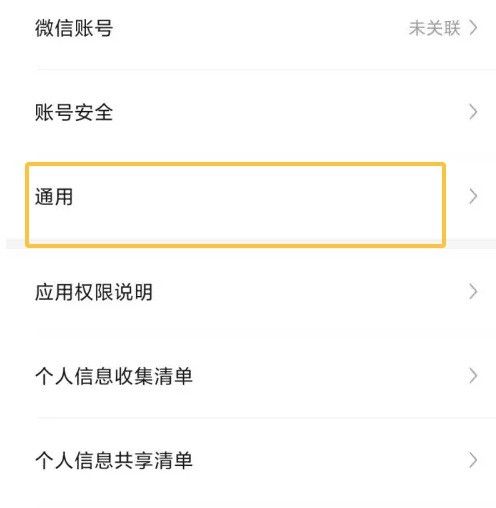 在设置界面中找到通用选项,点击后进入通用界面。