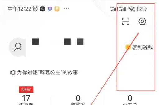 打开豌豆公主App,在主界面点击右下角的“我的”,在我的界面中点击右上角的“设置”