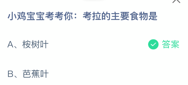 以上就是小鸡宝宝考考你:考拉的主要食物是,支付宝蚂蚁庄园2025年12月17日答案最新,更多精彩内容,请点击关注更新!