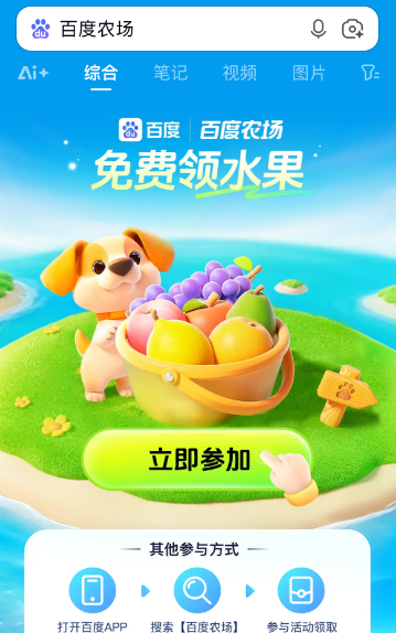 百度智慧农场免费入口:用户需下载最新版百度APP或百度极速版,在应用内搜索“百度农场”,登录百度账号并满足受邀条件即可进入活动官网页面参与。