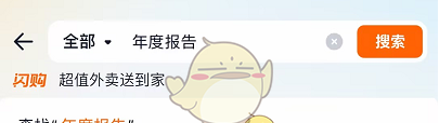 1、打开淘宝闪购,在搜索栏输入“年度报告”