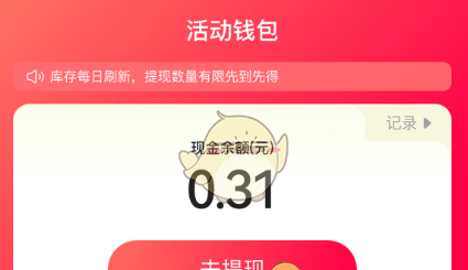 2、跳转页面进入【活动钱包】后点击下方的【去提现】。