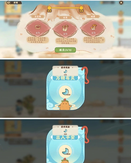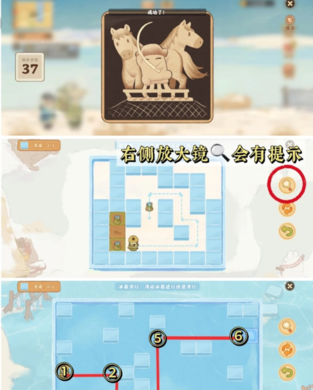 桃源深处有人家「淞雪兆吉」活动进入第三天,今日场景中新增四个小萝卜人等待寻找。同时,老虎机小游戏需尽量转到三个相同图案以获得最高代币奖励。