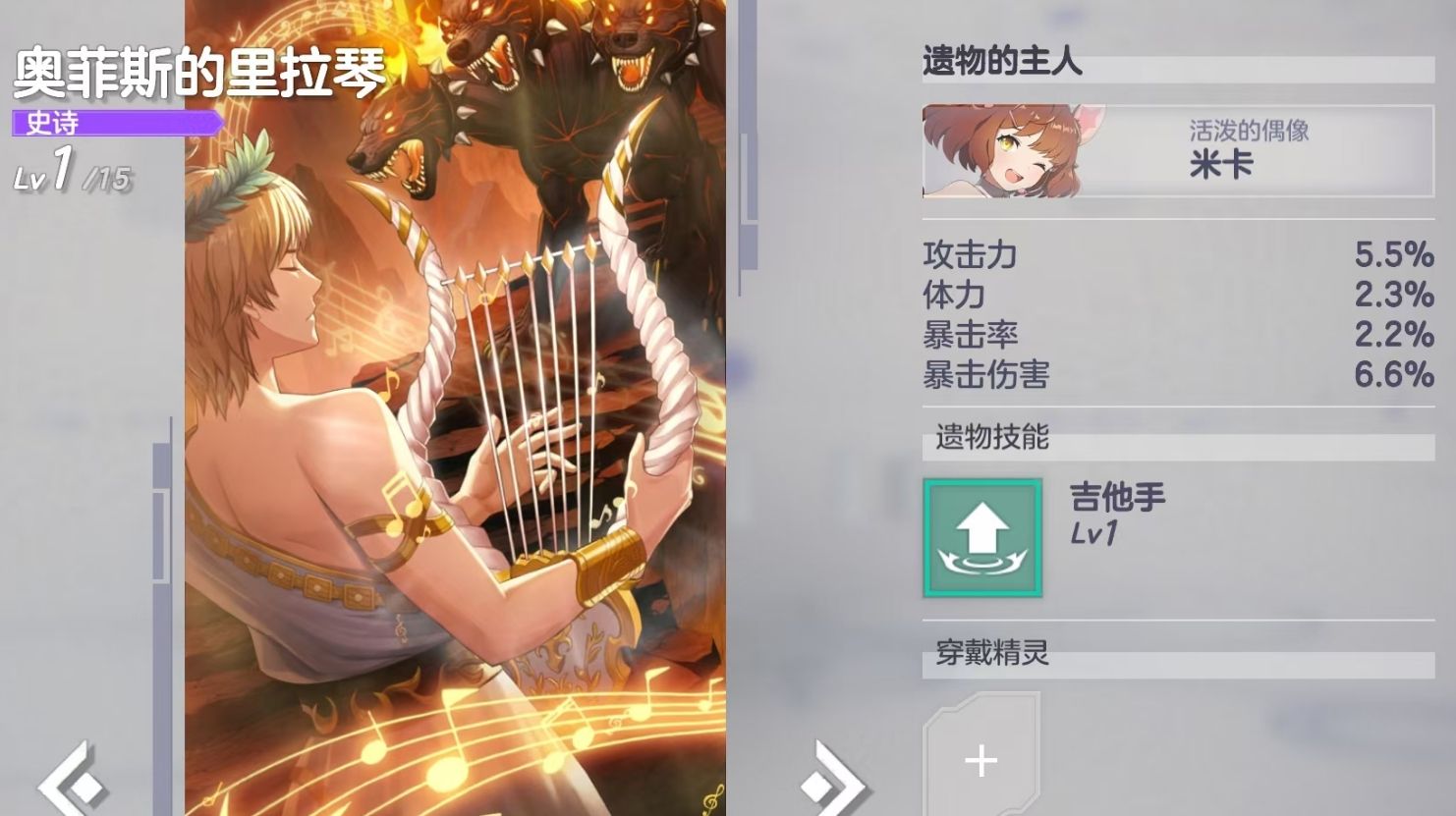 遗物本质是精灵的专属装备,每件遗物均预设唯一归属角色——即“遗物主人”。该设定决定了其词条属性与技能效果的高度定制化:当由指定主人佩戴时,不仅可激活全部基础属性加成,还将解锁专属技能,该技能等级随遗物本体等级同步成长,具备不可替代的战略价值。若由其他精灵穿戴,则仅生效属性部分,技能栏位处于锁定状态,无法触发。因此,在资源有限的前提下,优先为主角或核心输出精灵配置对应遗物,是提升整体战力效率最高的选择。