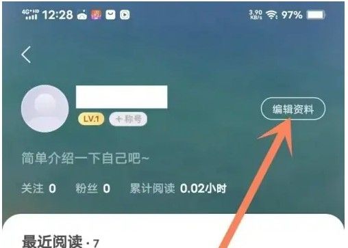 打开速读免费小说app个人主页,点击上方“编辑资料”图标。