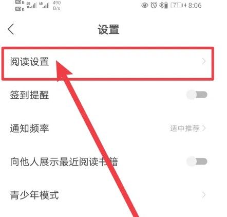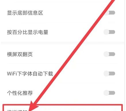 进入阅读设置界面,点击【推送通知】进入,如图所示。