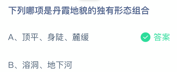 以上就是下列哪项是丹霞地貌的独有形态组合,支付宝蚂蚁庄园2025年12月18日答案最新,更多精彩内容,请点击关注更新!