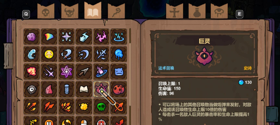 3、继续刷关,巨灵会以普通法术三选一、商店刷新、精英/宝箱掉落任一形式出现;拿到后即可正常装配使用。