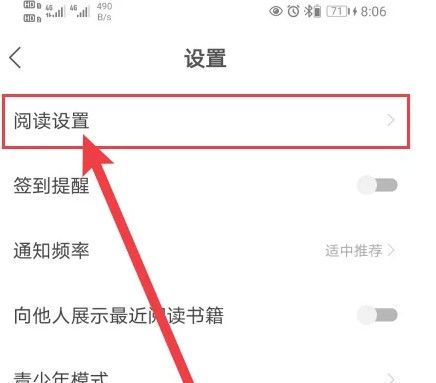 进入设置界面后,点击【阅读设置】进入,如图所示。