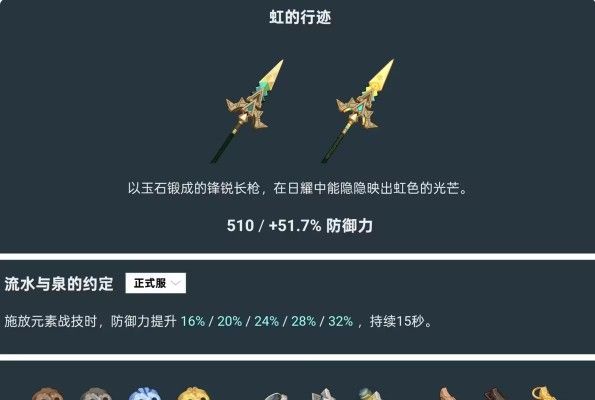 匣里灭辰(精通)、西风枪(充能拐)、虹的行迹(防御);