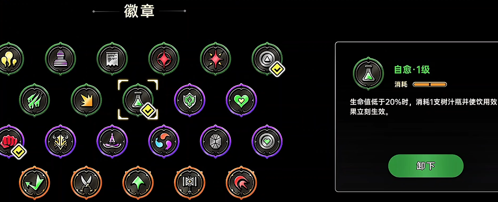如果还能在强化房间拿到普攻弹增加这个技能,那就会更厉害,但是这因为游戏中的女枪属于付费角色,首充6元才可以获得,所以如果是零氪玩家的话,在开荒阶段的BD搭配上面,大家也能在前期快速积攒资源,当然因为大家前期获得的资源是有限的,所以前期合理利用紫晶也很重要,大家可以通过NPC适当的升级一下主玩角色和天赋,再通过NPC打开预言,把徽章的容量升到2,接着解锁自愈装备,这样保证了刷图期间角色血量过低的话,会有自动回复的一个效果来增加玩家的容错率,等有足够的紫晶后,再把容量升到7,分别搭配上克星以及利息这两个徽章,这类徽章在开荒阶段对于上面提到的两个角色都比较趁手哦。