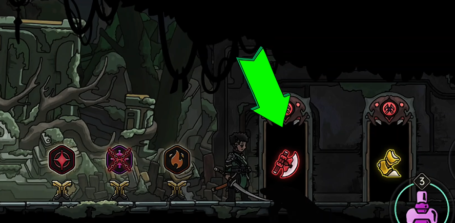 如果前两个房间没有刷到技能的话,就退出重进,也就是说这两个技能是开荒第一阶段的核心,没有这两个技能,刷图效率会很低,拿到这2个技能后到感知房间拿这个技能,到强化房间拿这个技能,这4个技能都到手后,初始角色几乎可以做到无限释放技能,再通过技能触发飞羽打伤害,从而实现无限循环,这个套路不管是清小怪还是打boss的效率都有,除此之外大家也可以优先进强化房间拿取跟飞羽相关的boss,也就是说开荒第一阶段以飞羽为核心搭建套路的话是大家的游戏体验都不会太差。