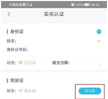 点击驾驶证的去认证
