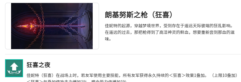 佳妮特(狂喜)在战场上时,所有友军的魔力恢复量增加10%(等级1解锁)