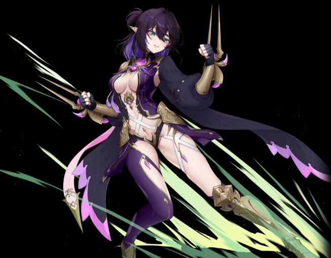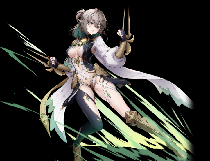 用比光速还快的速度移动,连续打击最接近的目标,对目标造成攻击力270%的伤害,以猛击地面的攻击,对自身周围2.5m范围内造成攻击力130%的额外伤害(等级1解锁)