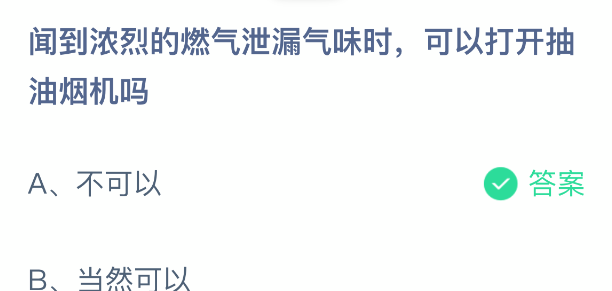以上就是闻到浓烈的燃气泄漏气味时,可以打开抽油烟机吗,支付宝蚂蚁庄园2025年12月23答案最新,更多精彩内容,请点击关注更新!