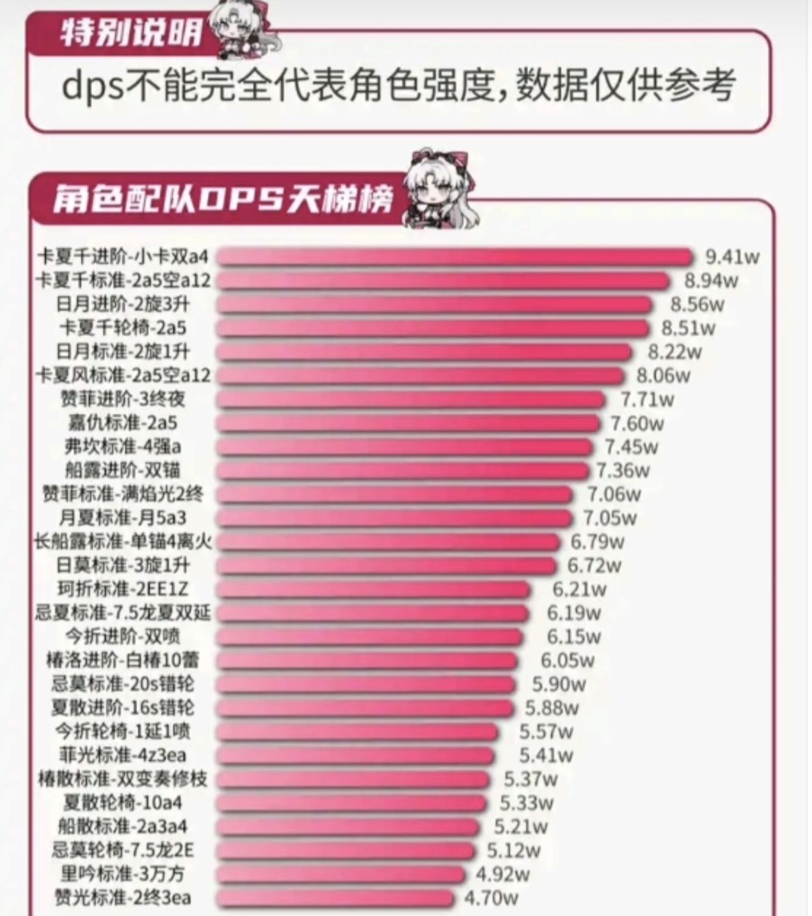 附上给个配队的拉表数据,数据只是参考,不代表角色强度!!!