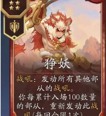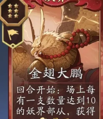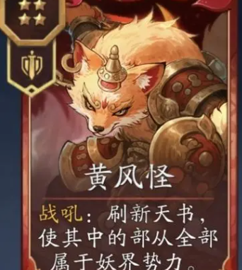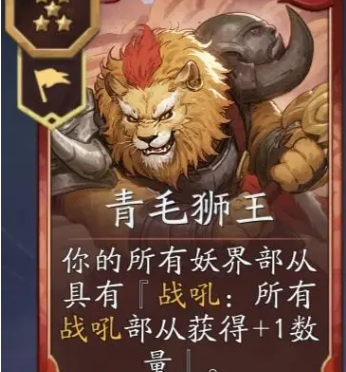 该体系的核心运转依赖三张关键卡:黄风怪、金翅大鹏与青毛狮王。黄风怪通过战吼效果刷新天书,并强制锁定妖族阵营,是整套阵容检索与定向抽卡的中枢;开局建议保留一张用于持续检索体系组件,其余冗余卡可及时替换以优化手牌结构。金翅大鹏提供稳定的经济循环——每回合开始时,根据场上数量固定产出灵石,构成中后期资源运转的基础保障。青毛狮王则赋予全体友方单位战后触发能力,其泛用性极强,在阵容成长各阶段均承担核心增益角色。