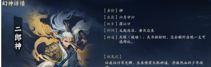 除了这几个神兽幻神之外,还有其他的神话角色幻神,很多玩家也会优先选择在游戏里使用二郎神,这个角色的设定比较独特,本身对于战斗能力是没有加成作用的,可以让玩家在挑战的过程中,能有比较高的概率从天书里获取自己想要的阵容,现有快速完成整体阵容的搭配,那就可以优先选择二郎神,同时这也是非常适合新手玩家的,很多人在游戏前期没有思路,就可以选择用这个阵容来实现整体的碾压。