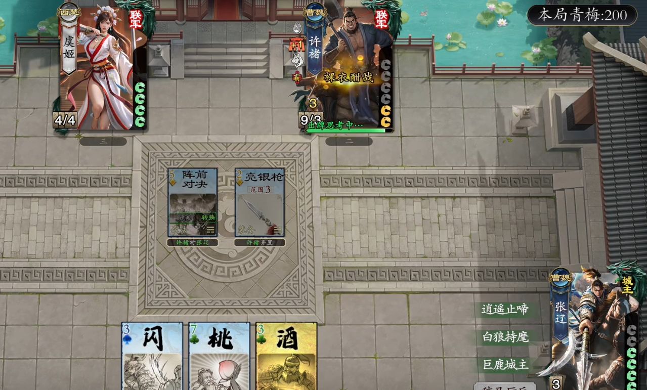通过煮酒功能就能直接进入到兵临城下的玩法中,并且在这个三人就能参与的模式里,玩家会被分为两个不同的阵营,其中一人会成为守城城主,单人为一队,而另外两人则是攻城武将,他们的目标就是合理击败守城城主,且只要他们有一个能赢下对决,另一人也能跟着所剩,所以两名攻城武将没有任何的利益冲突,所以在对决时也无需烦去防范队友,协力一同攻城就行。对决中,只有有任何一方的武将全部被击败,那另一方就能获胜。