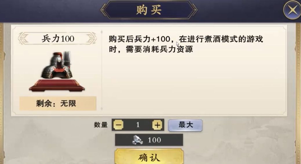 由于守城城主需要面对一打二的局面,所以成为了城主的他们会获得专属于城主的机制效果,也就是场地buff。不同城市的场地buff效果都不太一样,但对城主带来的加成强度都差不太多,所以不管玩家挑战哪座城的守城城主都不会有太大的差别。此外,参与兵临城下需要消耗兵力,游戏也会根据玩家所出的兵力数量,让投入最多的玩家成为守城城主来接受攻城武将的挑战,所以兵力也是该模式的入场卷。玩家赢下对局后能获得青梅,该道具可在青梅商店里 进行商品换购。
