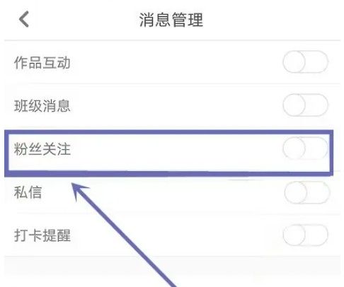 最后在消息推送界面,点击开启粉丝关注后方的开关即可。