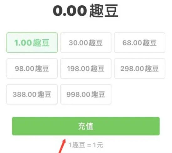 进入我的钱包后选择趣豆数量点击【充值】即可