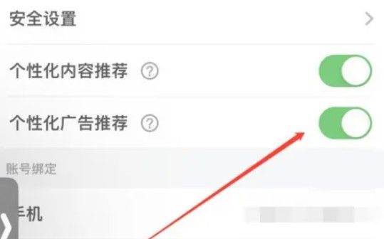 进入设置后关闭【个人性广告推荐】右侧开关即可